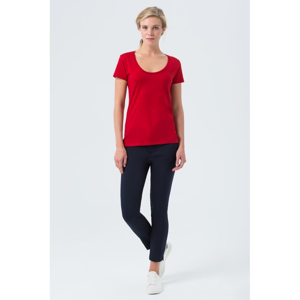 Воротник выполнен резинкой 1х1 с эластаном. Укрепляющая тесьма по вороту.