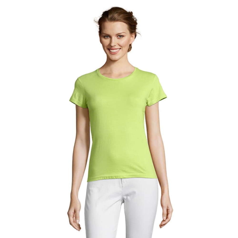 Miss — это базовая, комфортная и недорогая классическая футболка с фасонными (фигурными) швами для более женственной посадки из мягкого хлопкового полотна. Мягкость достигается за счет тонкой, но прочной пряжи, обеспечивающей приятные тактильные ощущения при носке.
