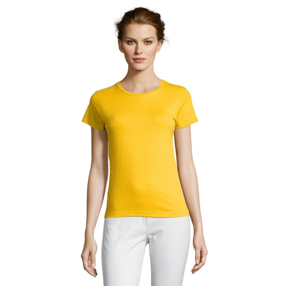 Miss — это базовая, комфортная и недорогая классическая футболка с фасонными (фигурными) швами для более женственной посадки из мягкого хлопкового полотна. Мягкость достигается за счет тонкой, но прочной пряжи, обеспечивающей приятные тактильные ощущения при носке.