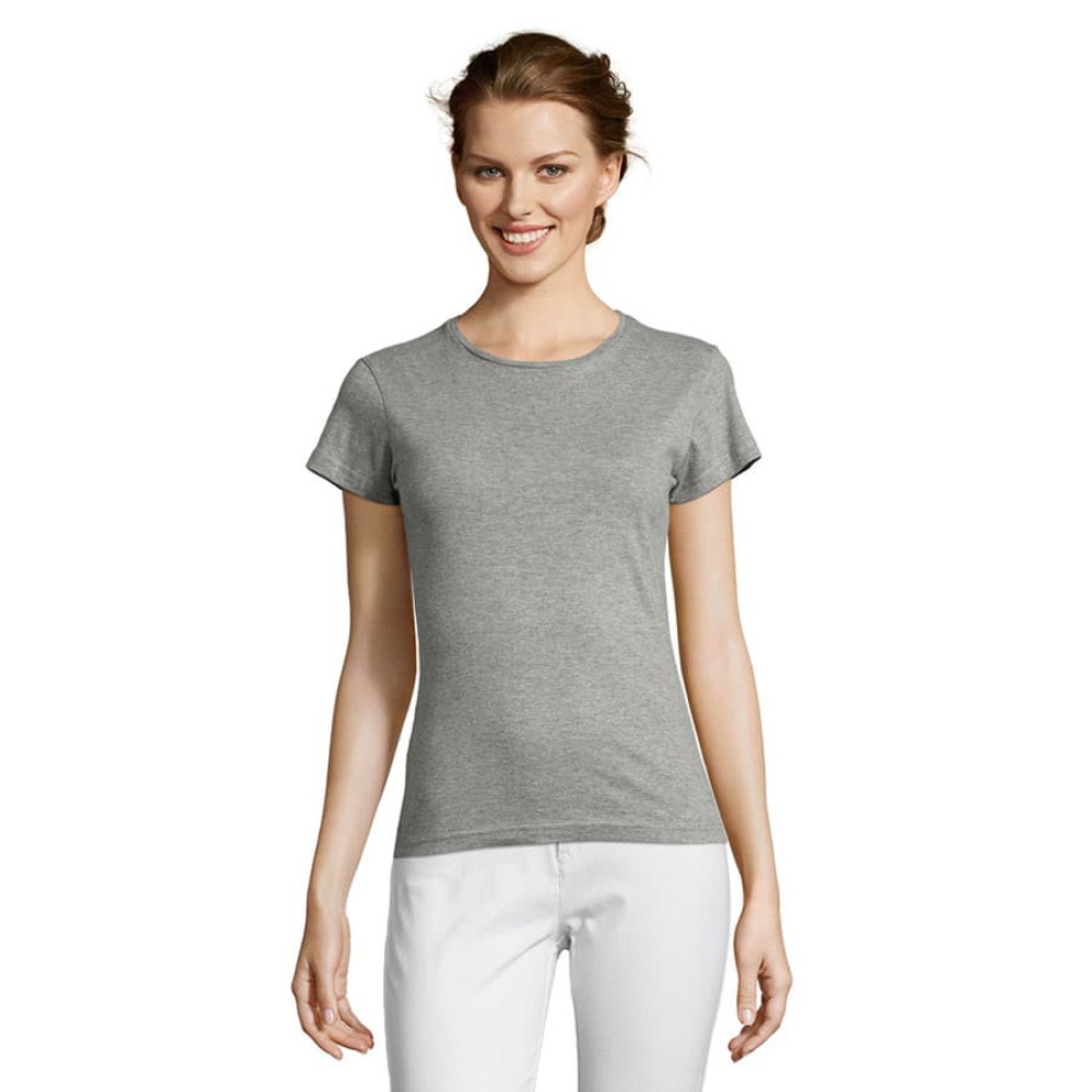 Miss — это базовая, комфортная и недорогая классическая футболка с фасонными (фигурными) швами для более женственной посадки из мягкого хлопкового полотна. Мягкость достигается за счет тонкой, но прочной пряжи, обеспечивающей приятные тактильные ощущения при носке.