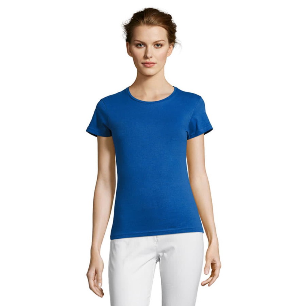Miss — это базовая, комфортная и недорогая классическая футболка с фасонными (фигурными) швами для более женственной посадки из мягкого хлопкового полотна. Мягкость достигается за счет тонкой, но прочной пряжи, обеспечивающей приятные тактильные ощущения при носке.