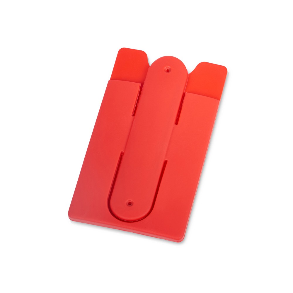 Чехол для визиток и кредитных карт с функцией подставки. За счет клейкой основы прикрепляется к обратной стороне телефона или любой другой плоской поверхности.