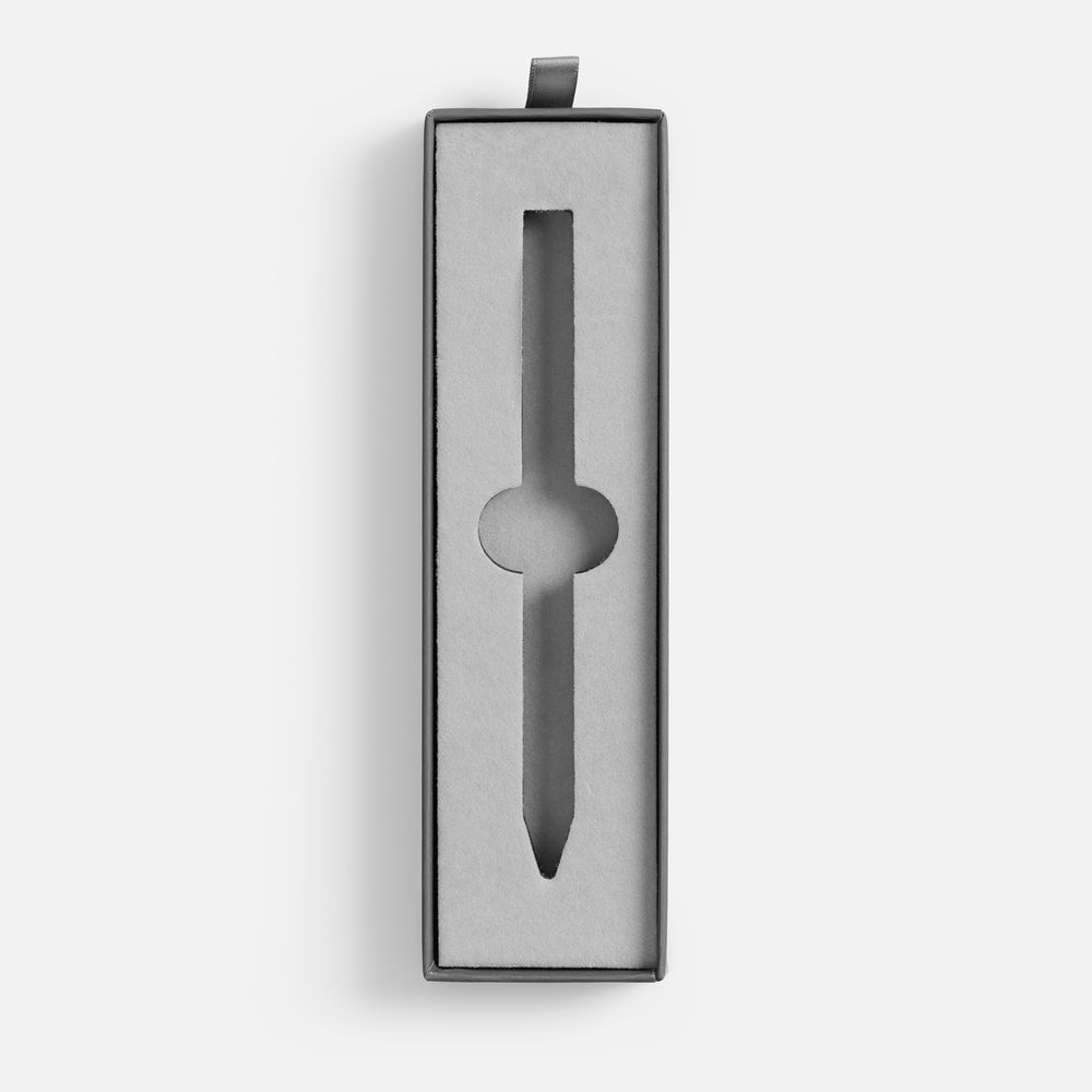 Картонный футляр с покрытием софт-тач с флокированным ложементом для одной ручки.