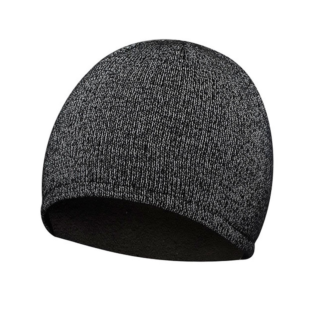 Комфортная шапочка для занятий спортом на свежем воздухе из акриловой пряжи со светоотражающими волокнами. Внутри мягкий и теплый флис.