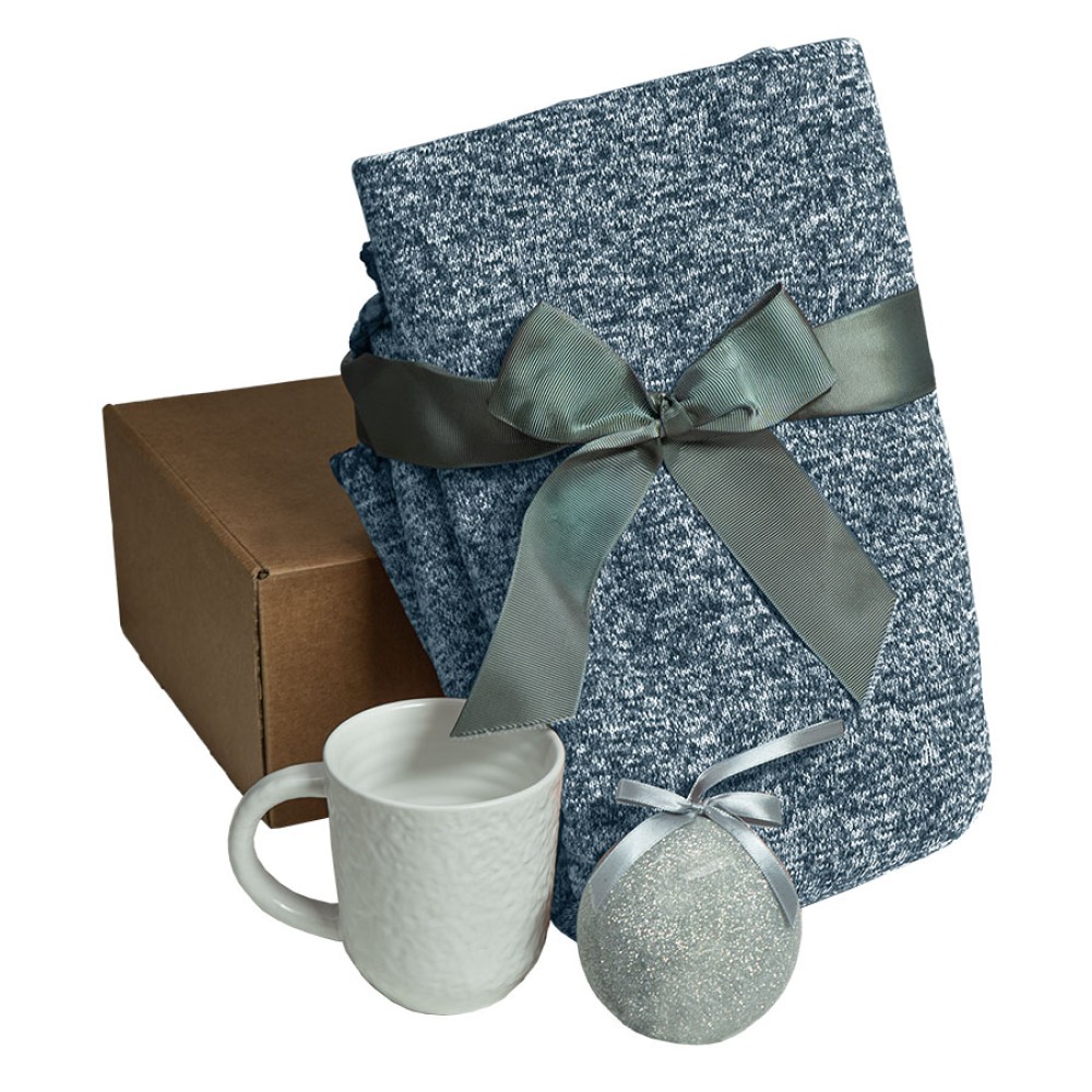 Подарочный набор HOLIDAY: плед, кружка, шар новогодний, коробка; синий
