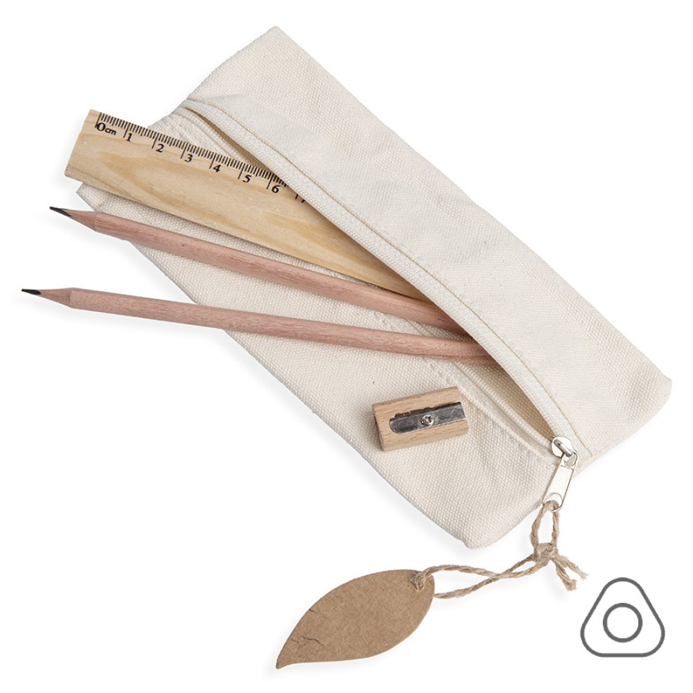Удобный и функциональный пенал, в который входят 2 чернографитных карандаша HB с грифелем 2,0 мм, деревянная линейка 15 см и точилка из дерева со стальным лезвием. Эко пенал украшает листочек из крафтового картона, коттрый так же подходит для персонализации.