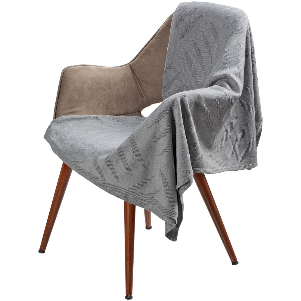 Плед с рельефным рисунком, обернут вязаной лентой.