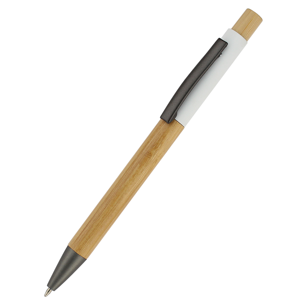 Ручка Авалон с корпусом из бамбука и софт-тач вставкой-S, белый
