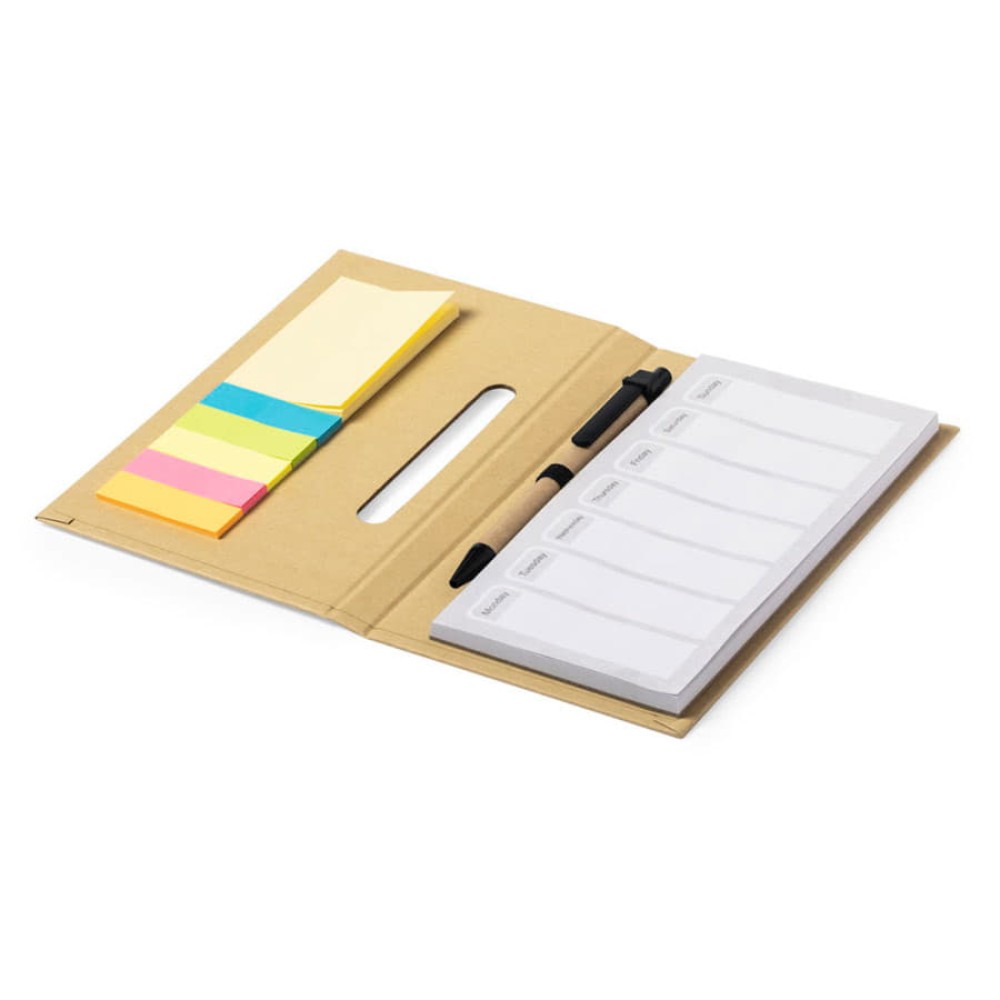 Блокнот со стикерами и ручкой KENDIL, рециклированный картон