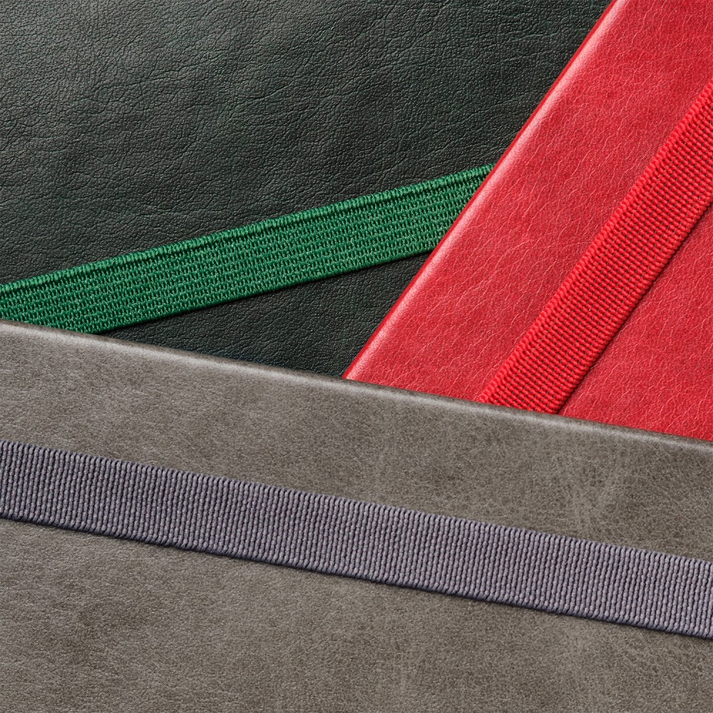 Резинка: есть, вертикальная, ширина 10 мм, в цвет материала обложки.