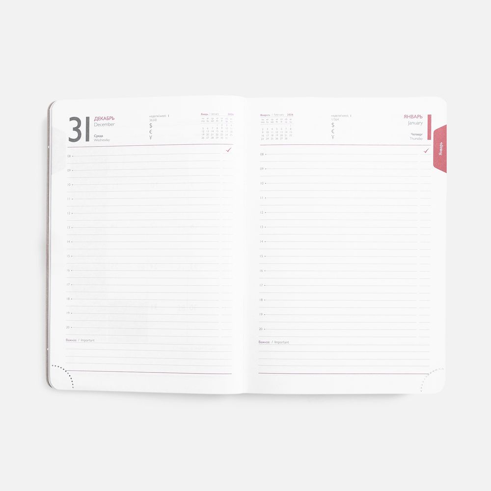 Ежедневник с твердой обложкой с поролоном из искусственной кожи Sarif, дополнен капталом и ляссе в цвет ежедневника.