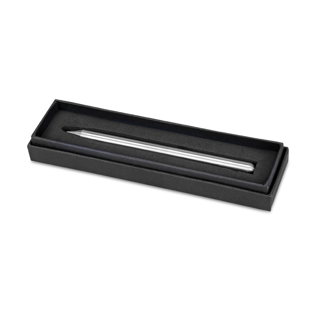 Необычный пишущий инструмент, больше всего напоминающий карандаш. Однако у этого карандаша нет грифеля, а пишущая часть сделана из специального металлического сплава. При использовании вечного карандаша на бумагу переносятся микрочастицы этого сплава, оставляя следы, похожие на карандашные штрихи. Пишущий наконечник карандаша довольно мягкий, поэтому при письме не стоит прилагать усилие, чтобы форма карандаша не изменилась. Пишущий наконечник вечного карандаша длиной 1 см может прослужить вам 25 лет при ежедневном использовании. Такой карандаш не может сломаться и его не нужно точить. Долговечный, практичный и необычный карандаш станет отличным подарком для человека, которого вы хотите удивить.