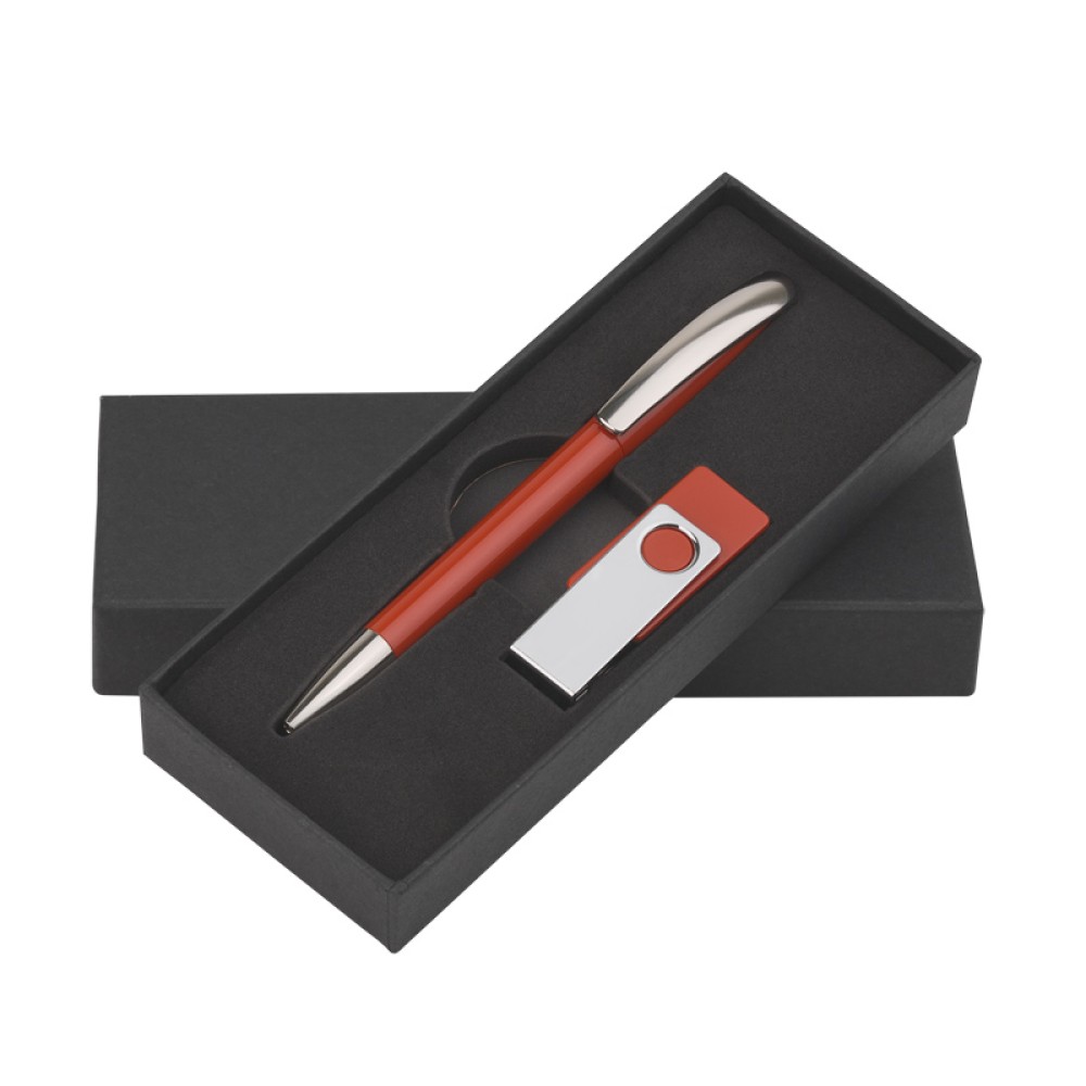 Набор ручка + флеш-карта 16Гб в футляре, красный, красный