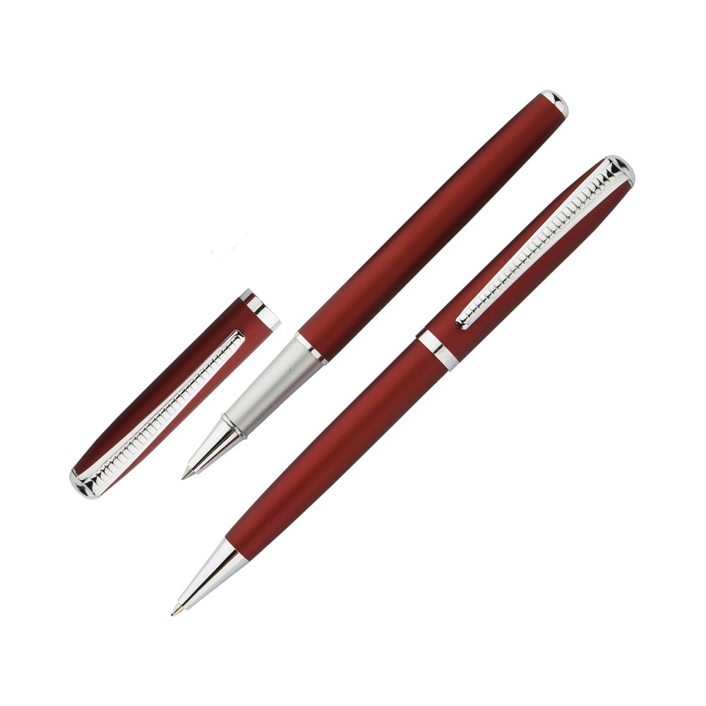 Стильный подарочный набор в фирменной коробке. Шариковая ручка с поворотным механизмом и ручка-роллер со съемным колпачком. Единый дизайн, оригинальное оформление. На металлический корпус обеих ручек можно нанести индивидуальную гравировку.
