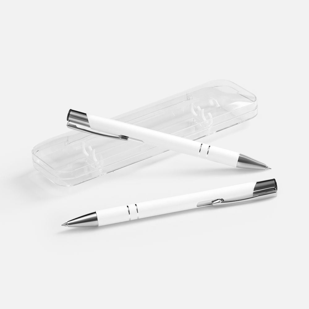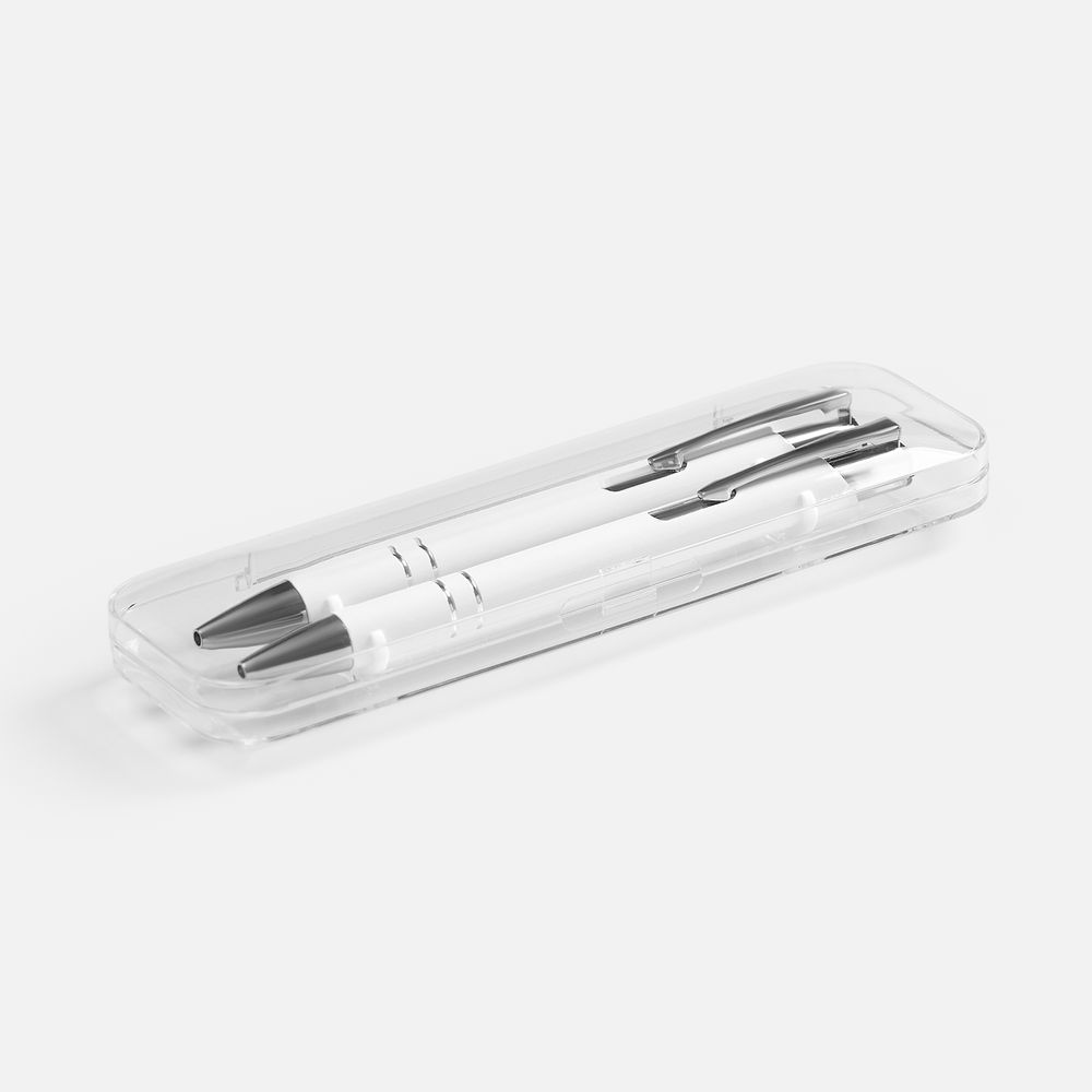 Набор из двух глянцевых ручек Keskus в прозрачном пластиковом футляре.