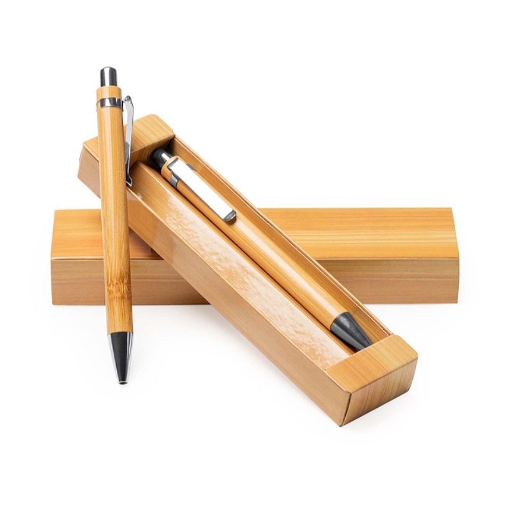 Набор из бамбуковой ручки и механического карандаша. Синие чернила.