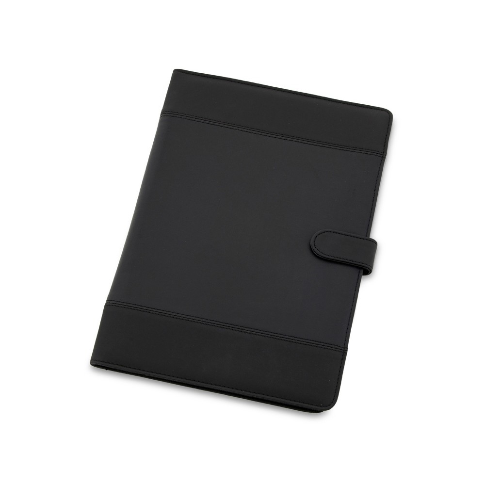 Стильная папка для документов с блокнотом и карманом под визитки - практичный бизнес-аксессуар, который обязательно пригодится. Папка закрывается на кнопку. На папку можно нанести символику организации при помощи тиснения.