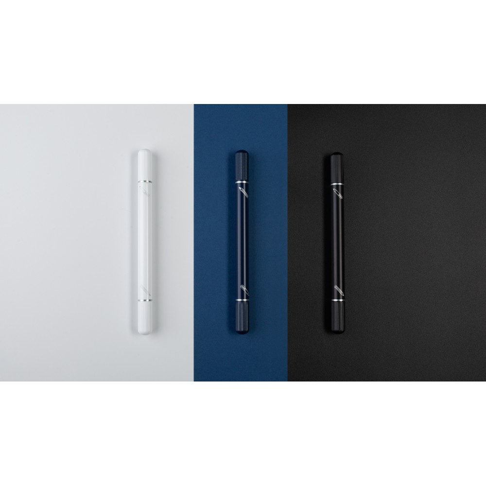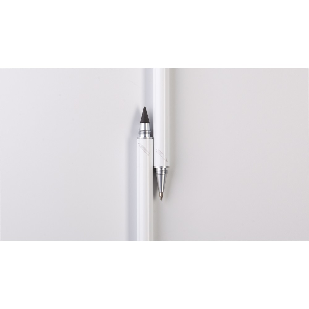 Набор из 2х письменных принадлежностей в едином корпусе - шариковой ручки и вечного карандаша, грифель которого выполнен из сверхпрочного графита с длиной письма до 30 000 метров, Закручивающиеся колпачки надёжно сохраняют пишущие узлы от внешних воздействий.