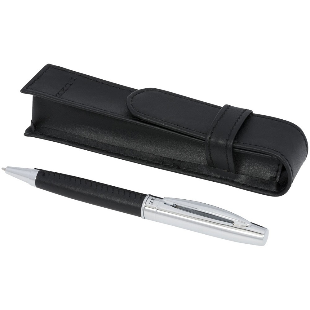 Подарочный набор Scherzo. Эксклюзивная шариковая ручка с обтянутым кожаным материалом корпусом и чехлом из искусственной кожи, упакованная в подарочную коробку LUXE. Металл и искусственная кожа.