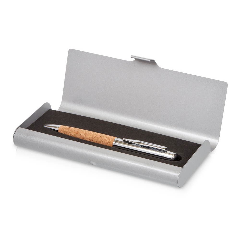 Металлическая шариковая ручка Cask с вставкой из пробки на корпусе в металлическом футляре.