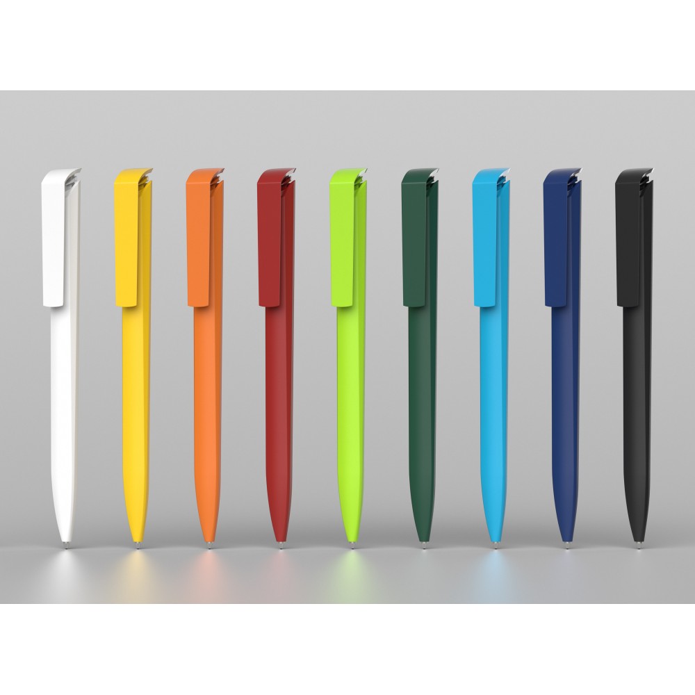 Необычная шестигранная ручка удобно ложится в руку. Корпус с напылением soft touch дополнен глянцевым клипом. Плоские грани корпуса и массивный глянцевый клип превосходно дополнит нанесение тампопечатью и объемной УФ-печатью.