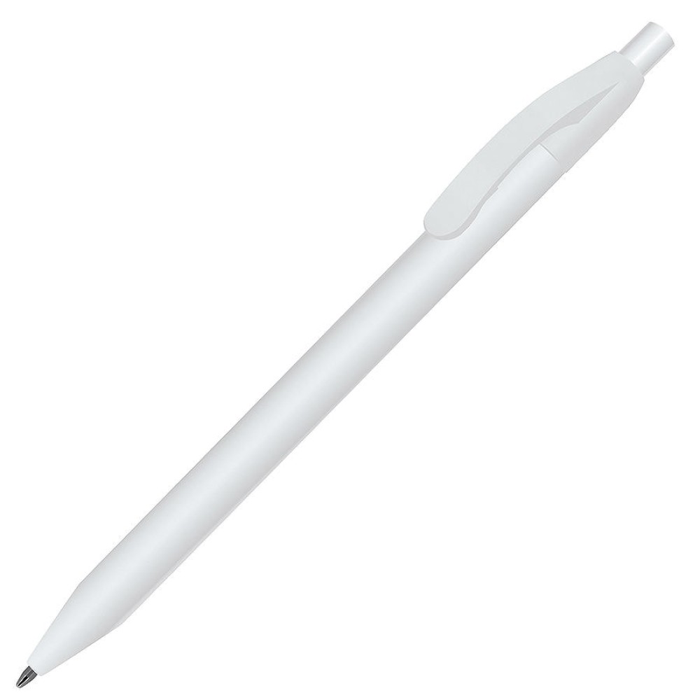 Пластиковая ручка белого цвета. Нажимной механизм. Сменный стержень.