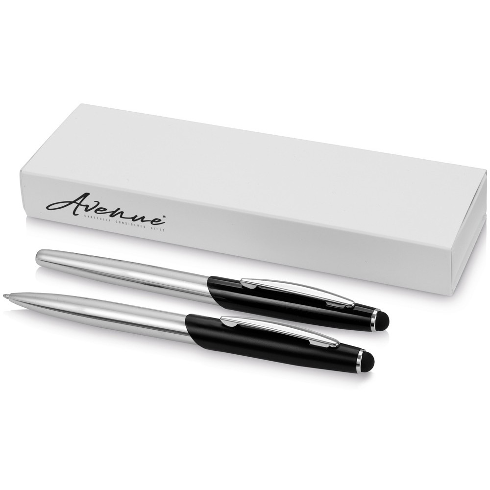 Набор Geneva, включает шариковую ручку-стилус и ручку-роллер. Изящная шариковая ручка-стилус и ручка-роллер с матовой верхней частью и блестящей хромированной нижней частью и соответствующими хромированными вставками. Набор ручек Geneva будет отличным деловым подарком к любому празднику.