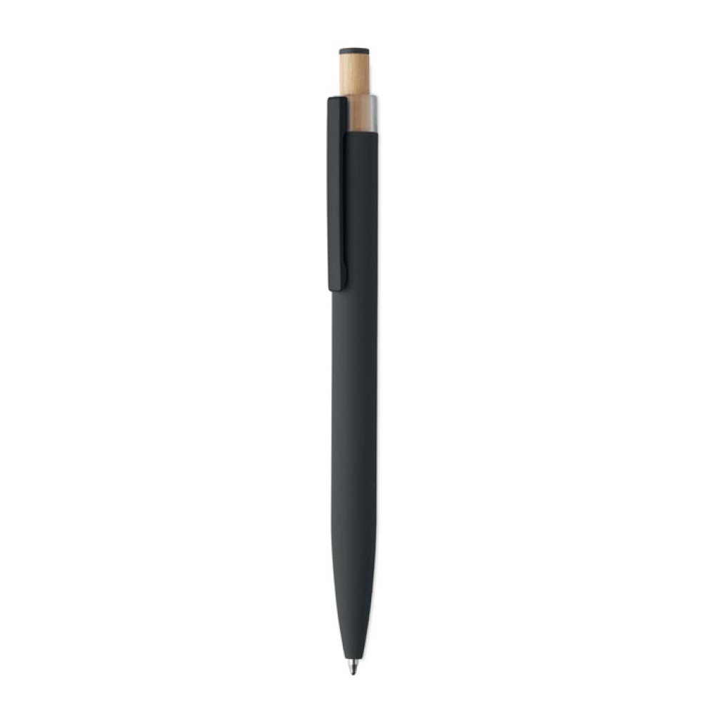 Шариковая ручка из переработанного алюминия с кнопкой из бамбука с цветными деталями и металлическим клипом. Синие чернила.