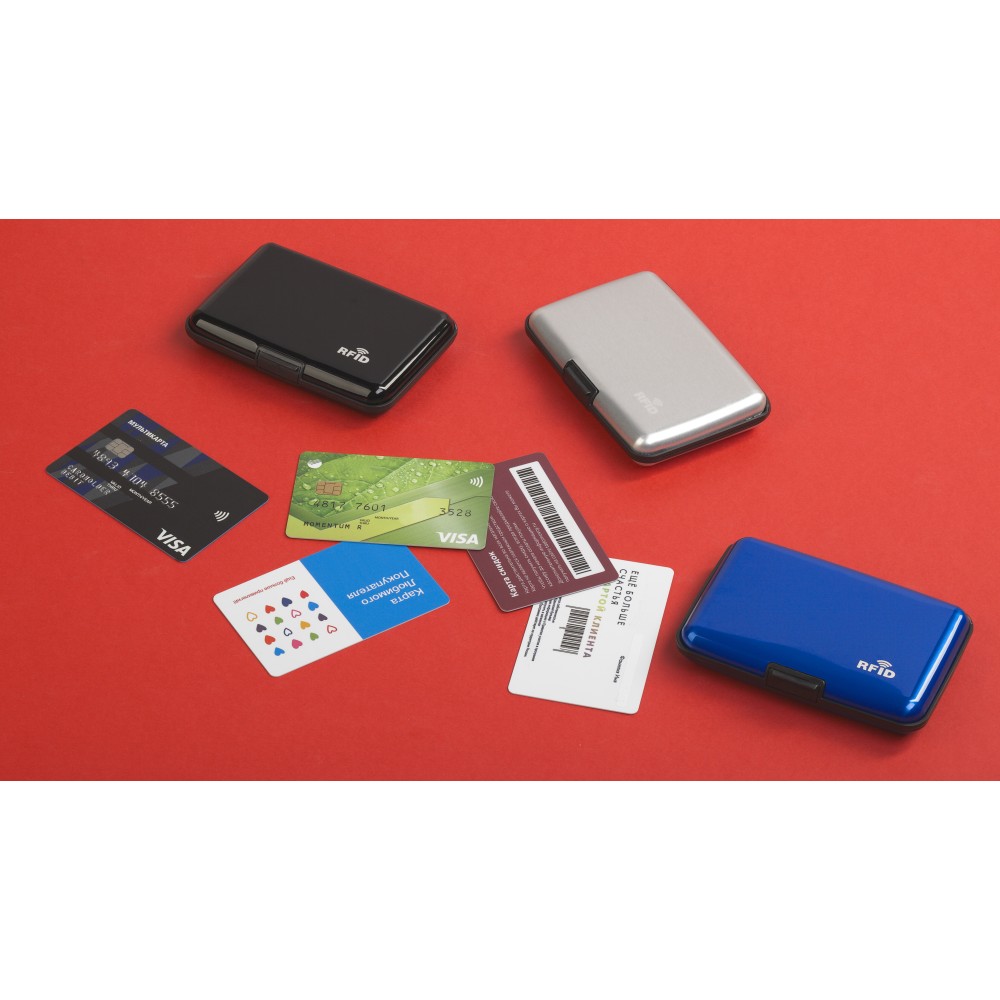 Стильный футляр для банковских карт и визиток с RFID - защитой. Простое и практичное хранение банковских и скидочных карт, визиток. Прочный алюминиевый корпус, внутри содержит 6 отделений.