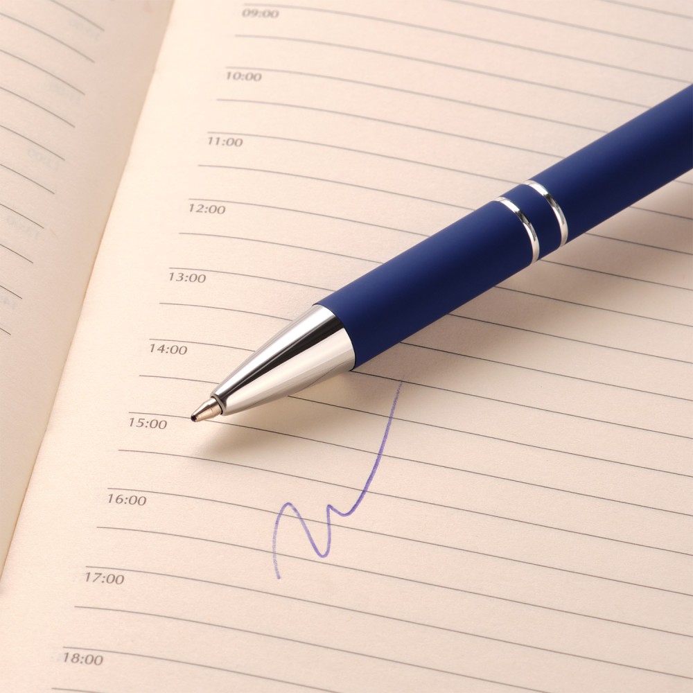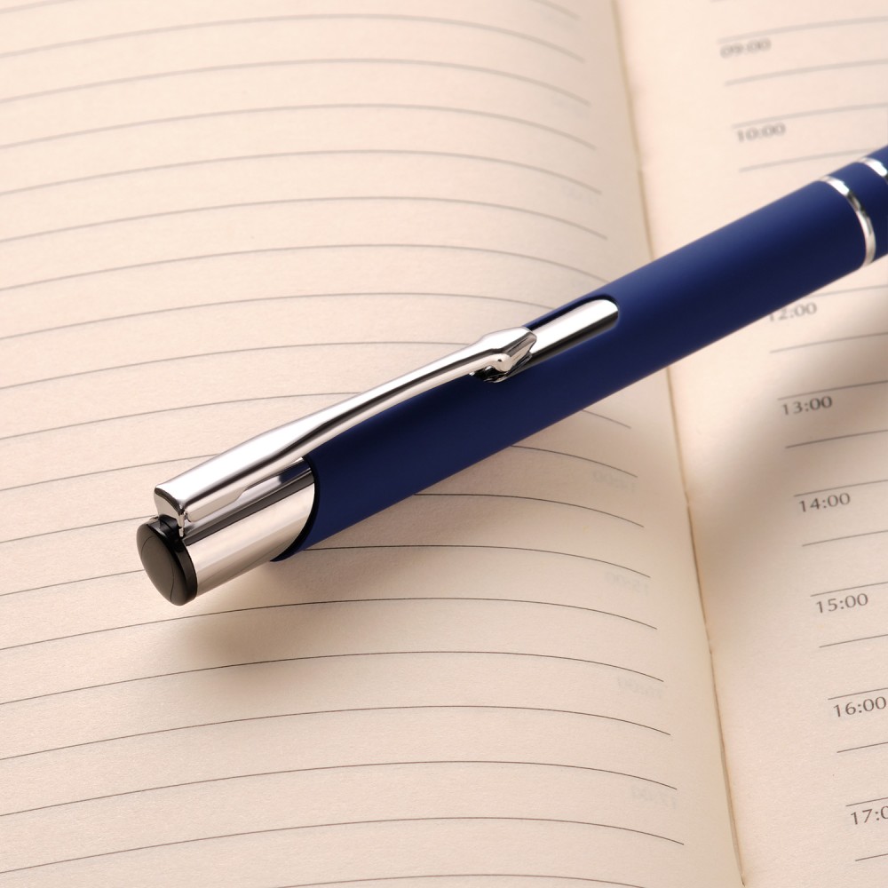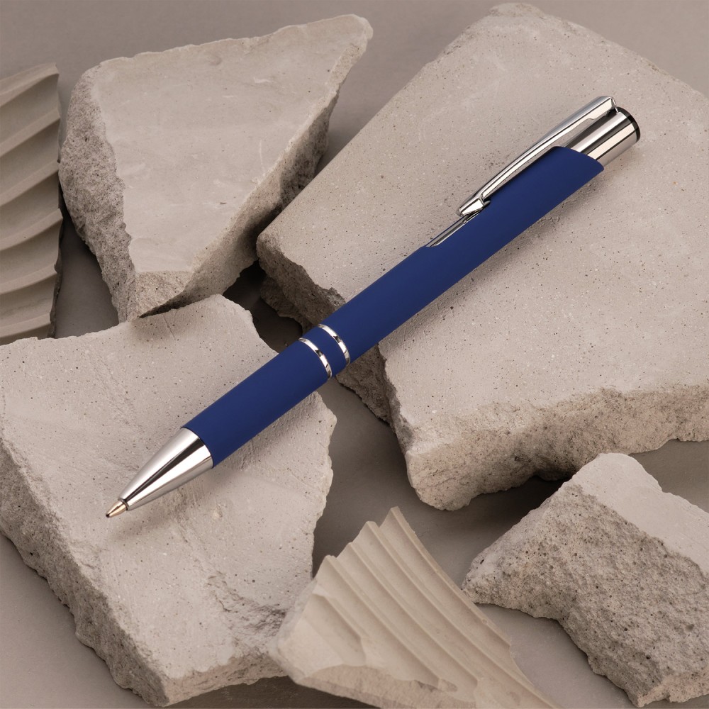 Классическая ручка в шелковистом покрытии soft touch станет прекрасным инструментом для письма. Хромированные детали – два декоративных кольца и функциональный надежный клип.
