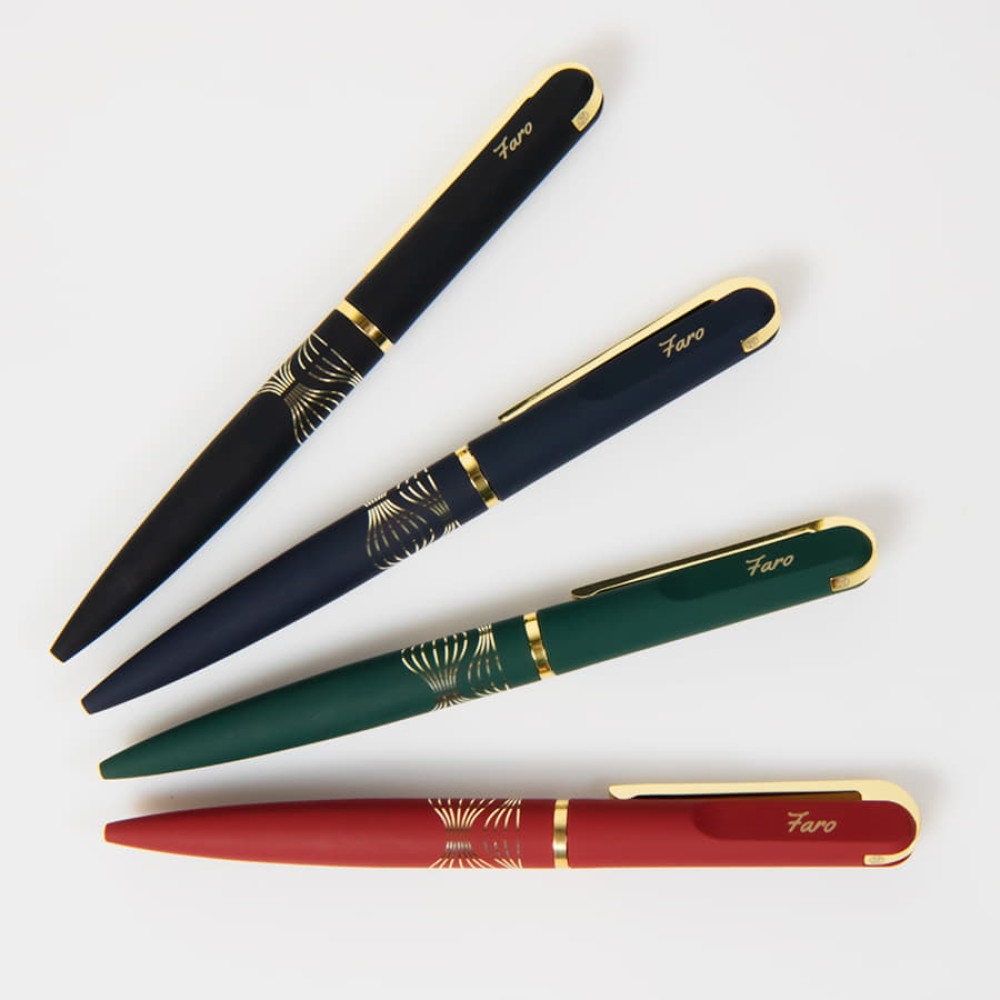 Глубокий насыщенный оттенок и бархатистая поверхность ручки FARO создают благородный контраст с отделкой цвета желтого золота. Оригинальный клип, скругленный в верхней части, напоминает о роскошных украшениях и символах власти.