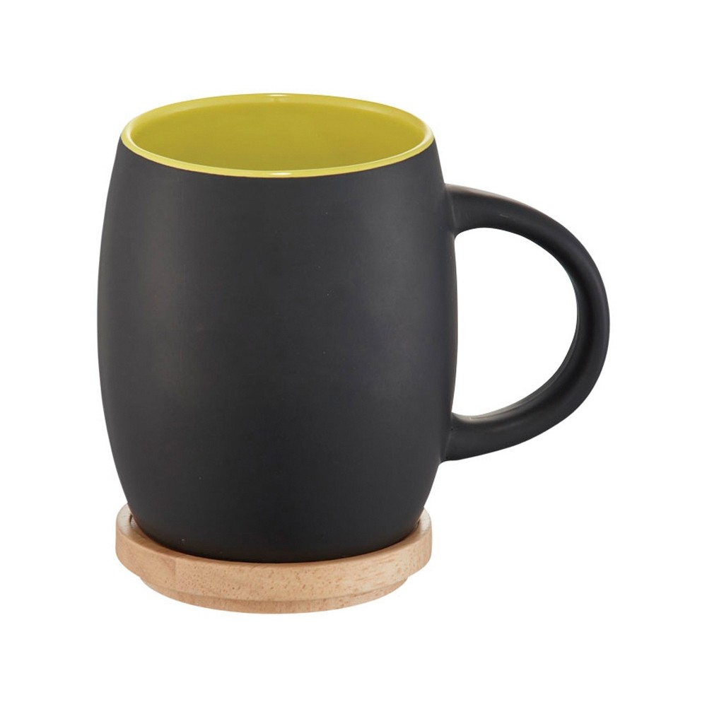 Керамическая чашка Hearth с деревянной крышкой-костером, черный/лайм