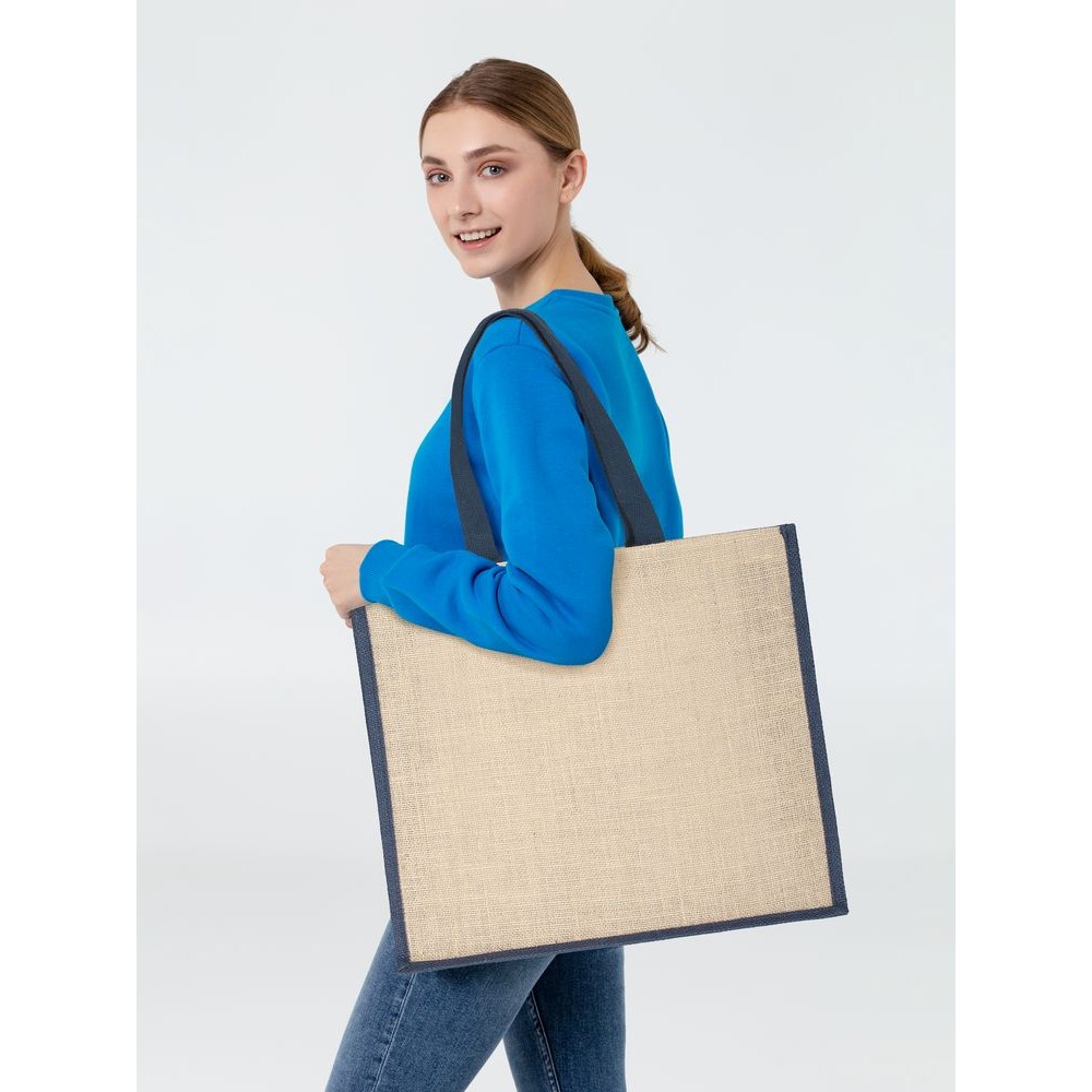 Холщовая сумка для покупок Bagari с синей отделкой