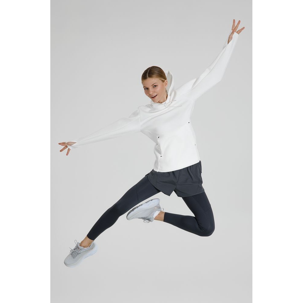 Такой «сэндвич» хорошо держит форму (а еще приятно пружинит под пальцами), но при этом остается легким и эластичным, не сковывает движений и отводит лишнюю влагу. Внутренняя ячеистая структура не препятствует воздушному обмену, позволяя коже «дышать», — а значит, больше никакого «эффекта парника» во время тренировки или активной прогулки.