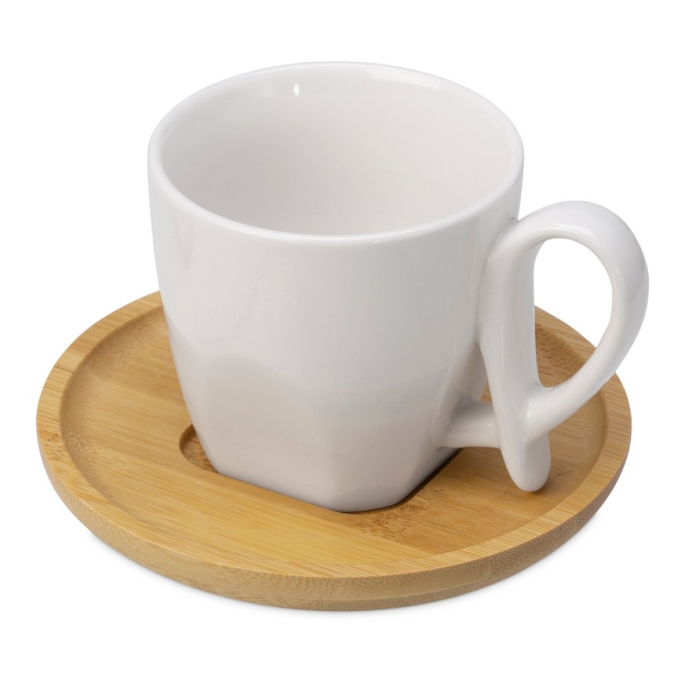 Кофейная пара с бамбуковым блюдцем Mandy, белый (Р)