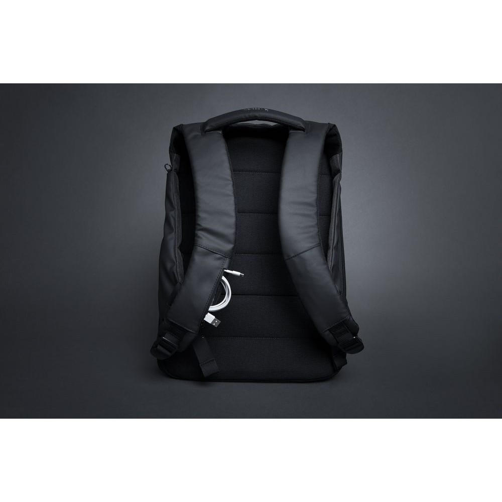 - 2 кармана на молниях, один из которых с портом USB для зарядки - 2 органайзера для туалетных принадлежностей и электронных аксессуаров можно зафиксировать внутри рюкзака на липучках