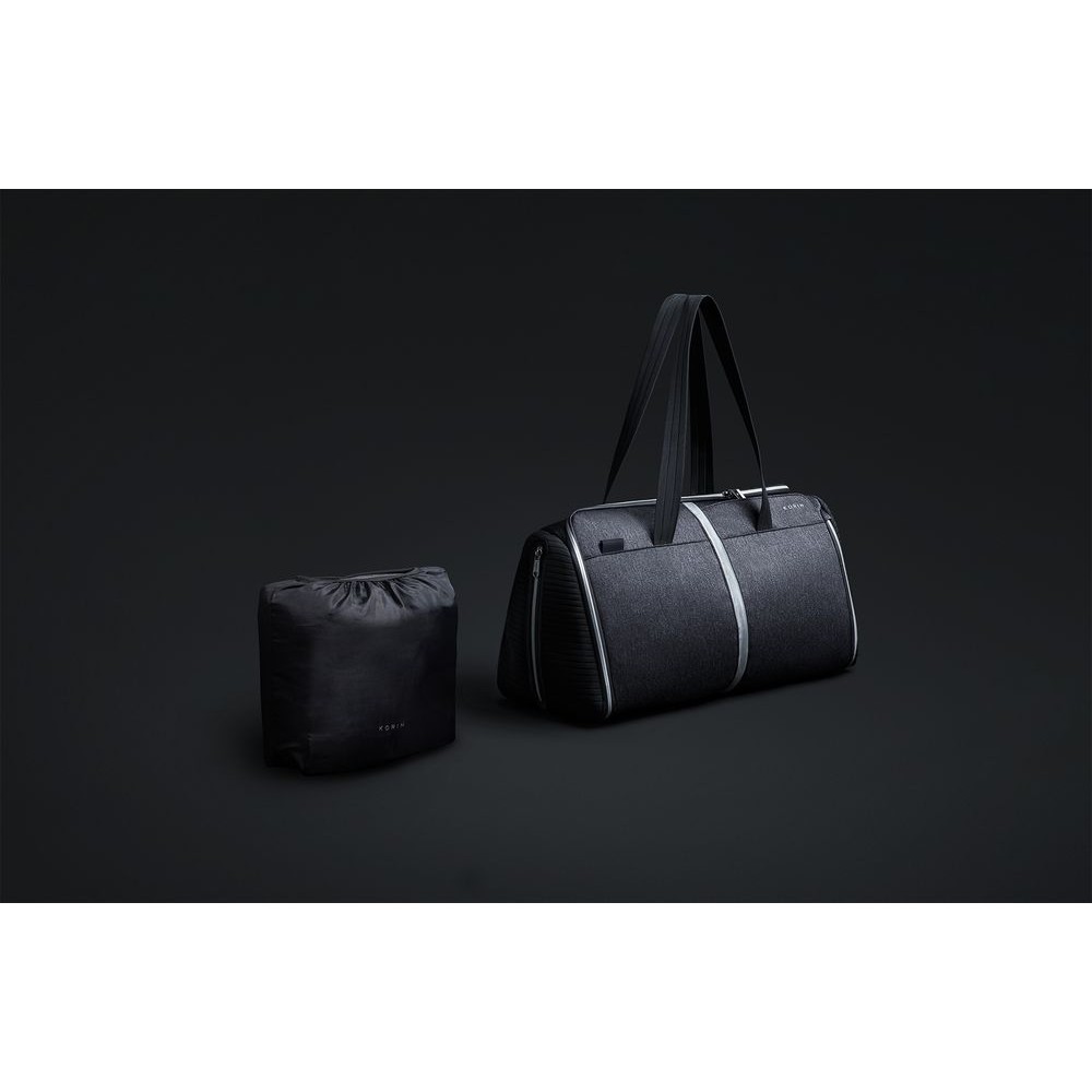 Благодаря единой молнии, идущей по всей сумке, она складывается в пришитый чехол, поэтому не займет много места в багаже или в шкафу.
