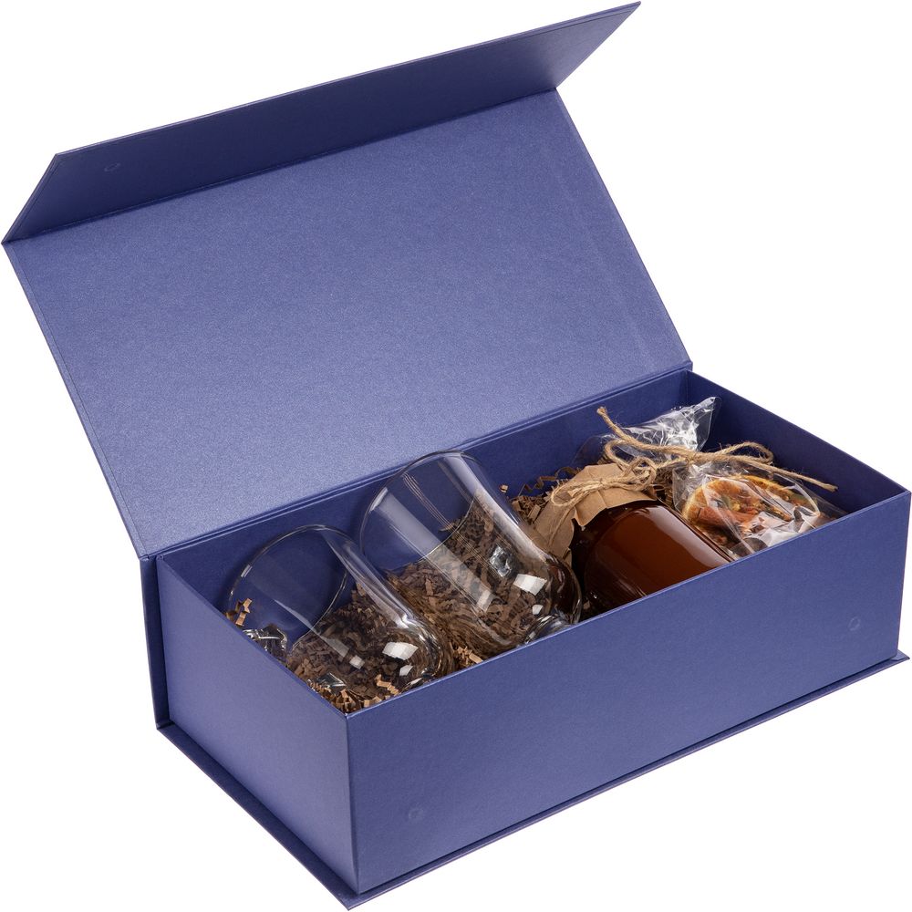 Коробка изготовлена из переплетного картона, кашированного дизайнерской бумагой Galaxy Metallic, с крышкой на магните.