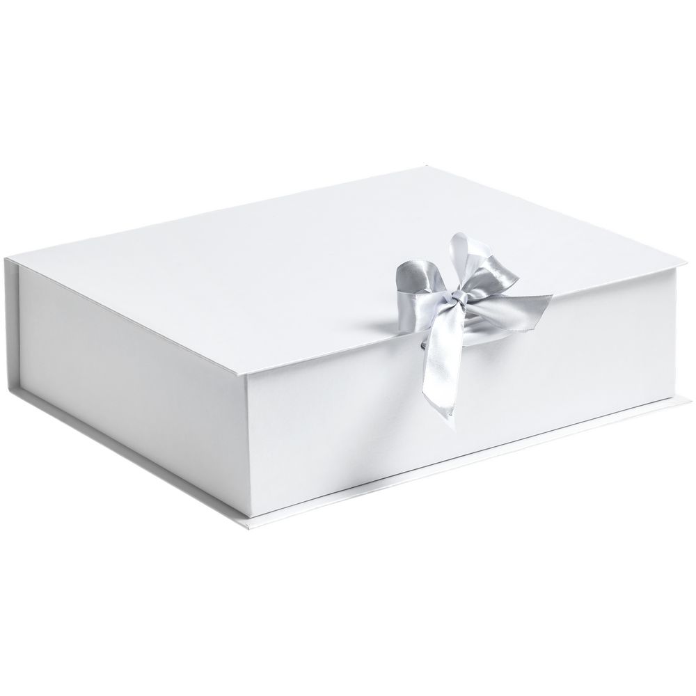 Коробка выполнена из переплетного картона, кашированного дизайнерской бумагой Majestic, с крышкой на ленте.