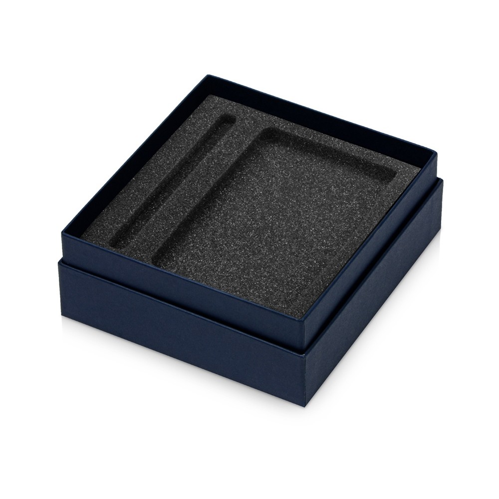 Коробка с ложементом для ручки и блокнота А6. Коробка изготовлена из переплетного картона кашированного дизайнерской бумагой эфалин, ложемент изготовлен из поролона премиум-класса.