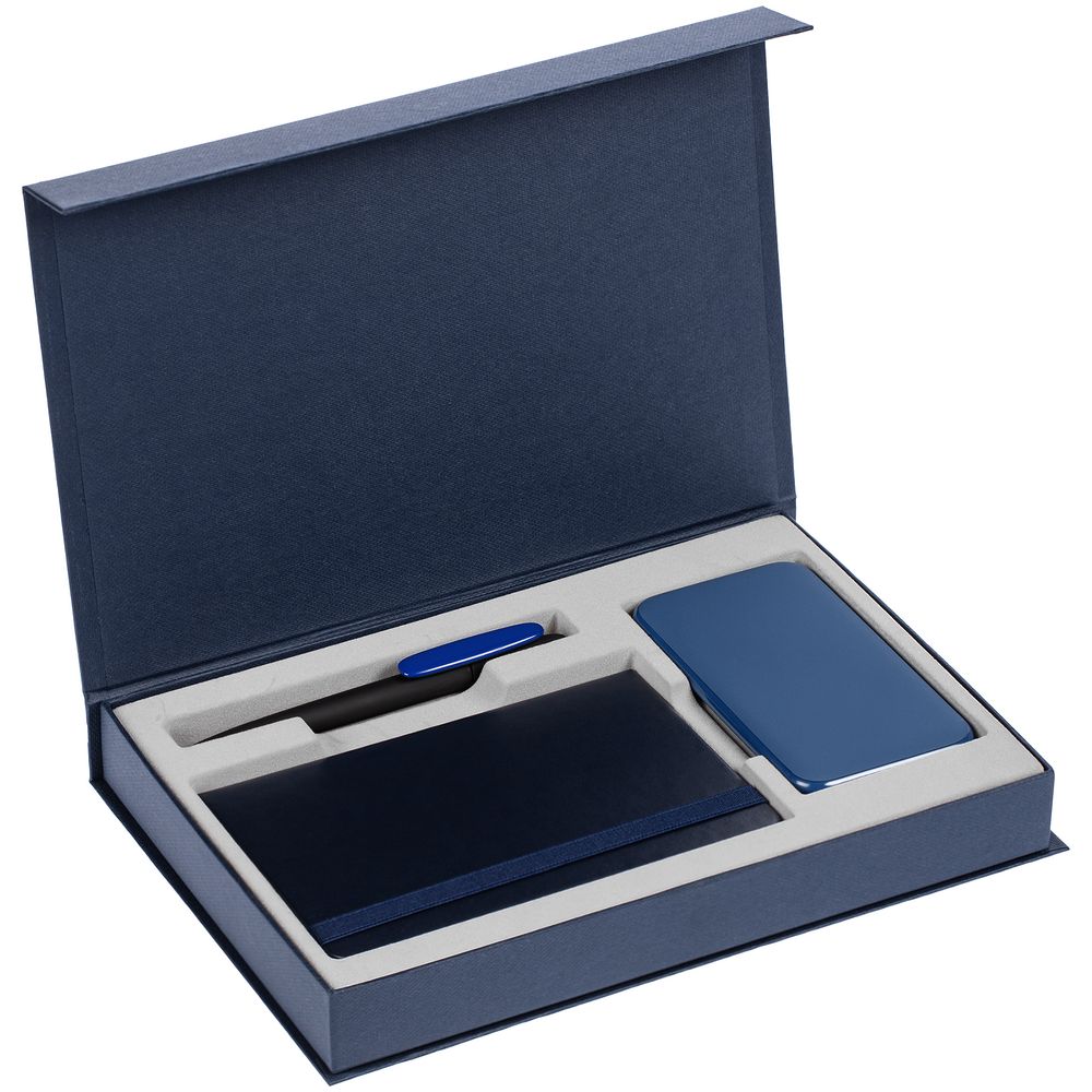 Коробка Silk с ложементом под ежедневник 10x16 см, аккумулятор и ручку, синяя