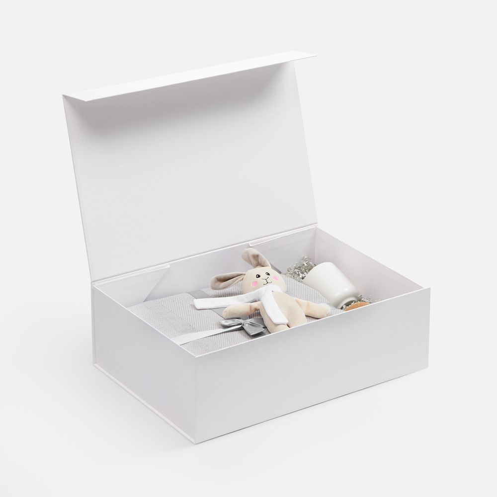 Подарочная коробка RealBig Fold изготовлена из переплетного картона, кашированного дизайнерской бумагой с крышкой на магните. Благодаря самосборной конструкции коробка легко и быстро собирается без дополнительных инструментов. Это идеальное сочетание эстетики и функциональности для упаковки ценных презентов и аксессуаров, где важны и практичность, и декоративность — для самого приятного впечатления от вручения.