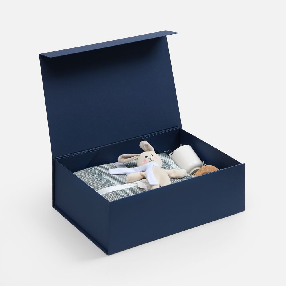 Подарочная коробка RealBig Fold изготовлена из переплетного картона, кашированного дизайнерской бумагой с крышкой на магните. Благодаря самосборной конструкции коробка легко и быстро собирается без дополнительных инструментов. Это идеальное сочетание эстетики и функциональности для упаковки ценных презентов и аксессуаров, где важны и практичность, и декоративность — для самого приятного впечатления от вручения.