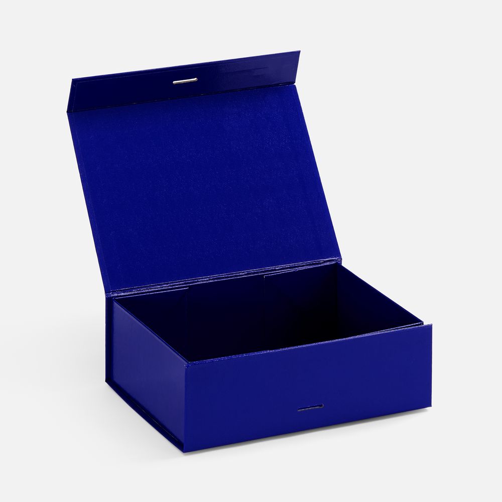 Коробка из переплетного картона с лайнером, ламинированым полуглянцевой текстурной пленкой и устойчивого к царапинам. Крышка на двух магнитах дополнительно фиксируется лентой.Толщина картона 2 мм.