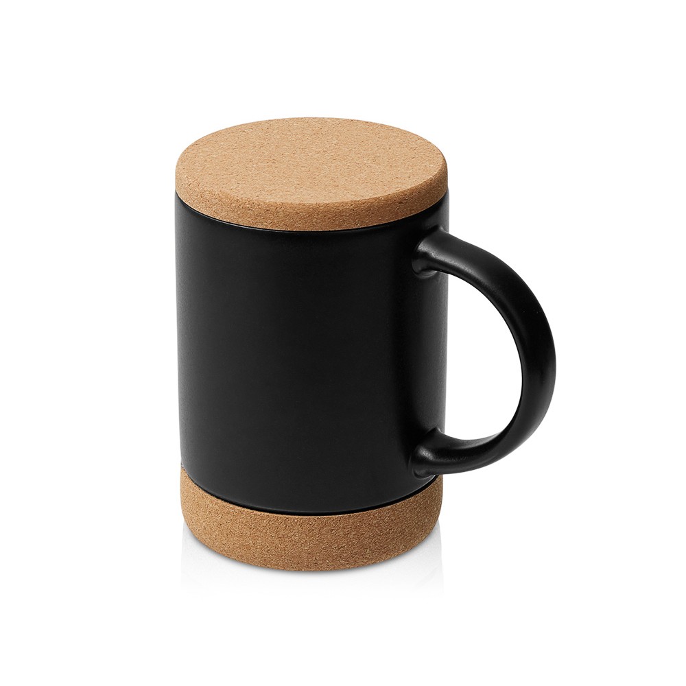 Кружка 450 мл с пробковым дном с крышкой Корк & Бон, черный