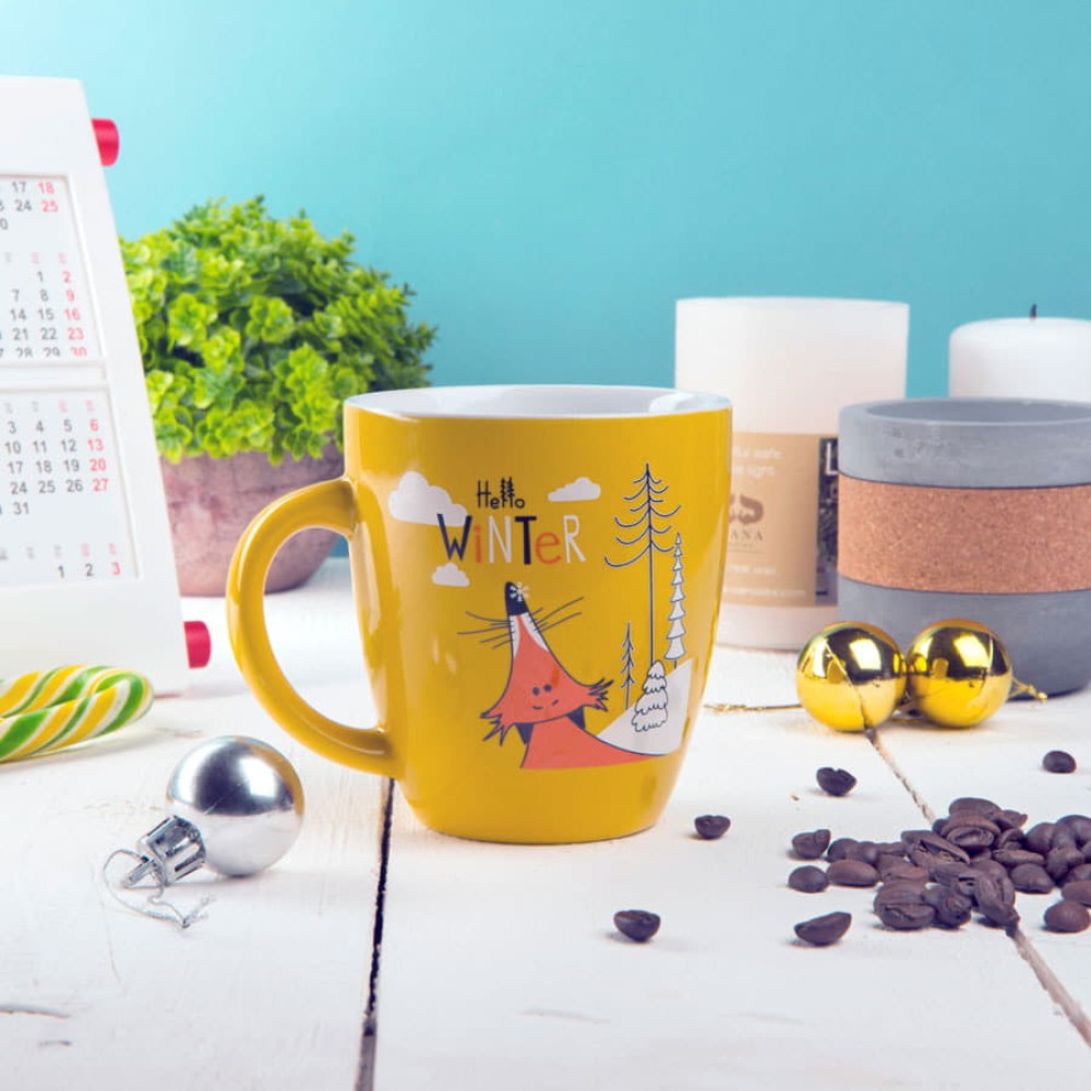 Широкая линейка цветов от строго черного и нежного белого до стильного оранжевого и глубокого красного, цветное глянцевое покрытие снаружи и белый цвет внутри, небольшая емкость (310 мл) делают ее идеальным решением любой маркетинговой задачи.