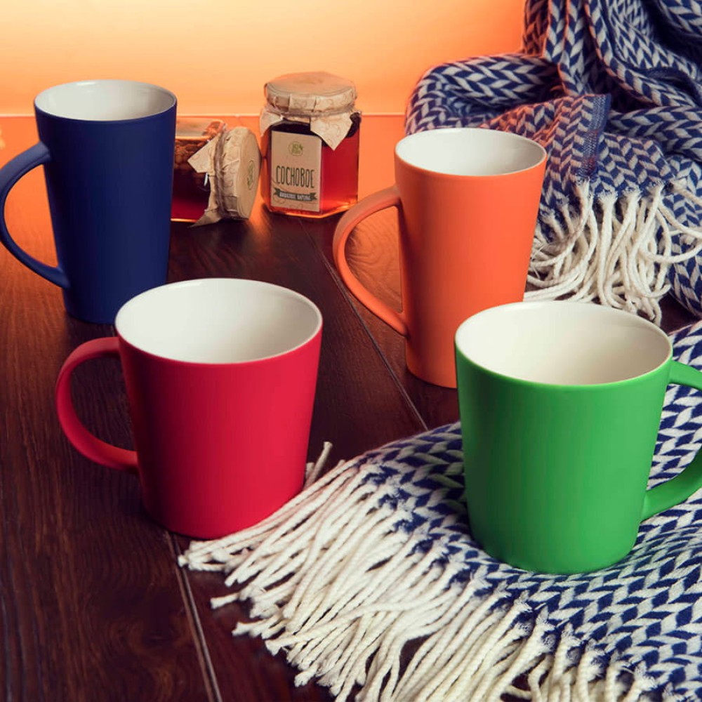 Фарфоровая кружка необычной формы с прорезиненным покрытием – приятным на ощупь, ударопрочным и износостойким. Ее вместительность поможет реже отрываться от дел и дольше наслаждаться любимым напитком.