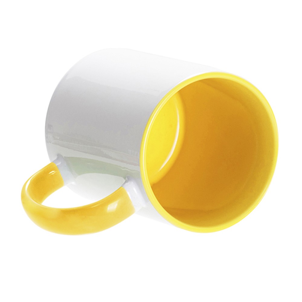 Кружка для сублимации, 330 мл, d=82 мм, стандарт А, белая, желтая внутри, желтая ручка