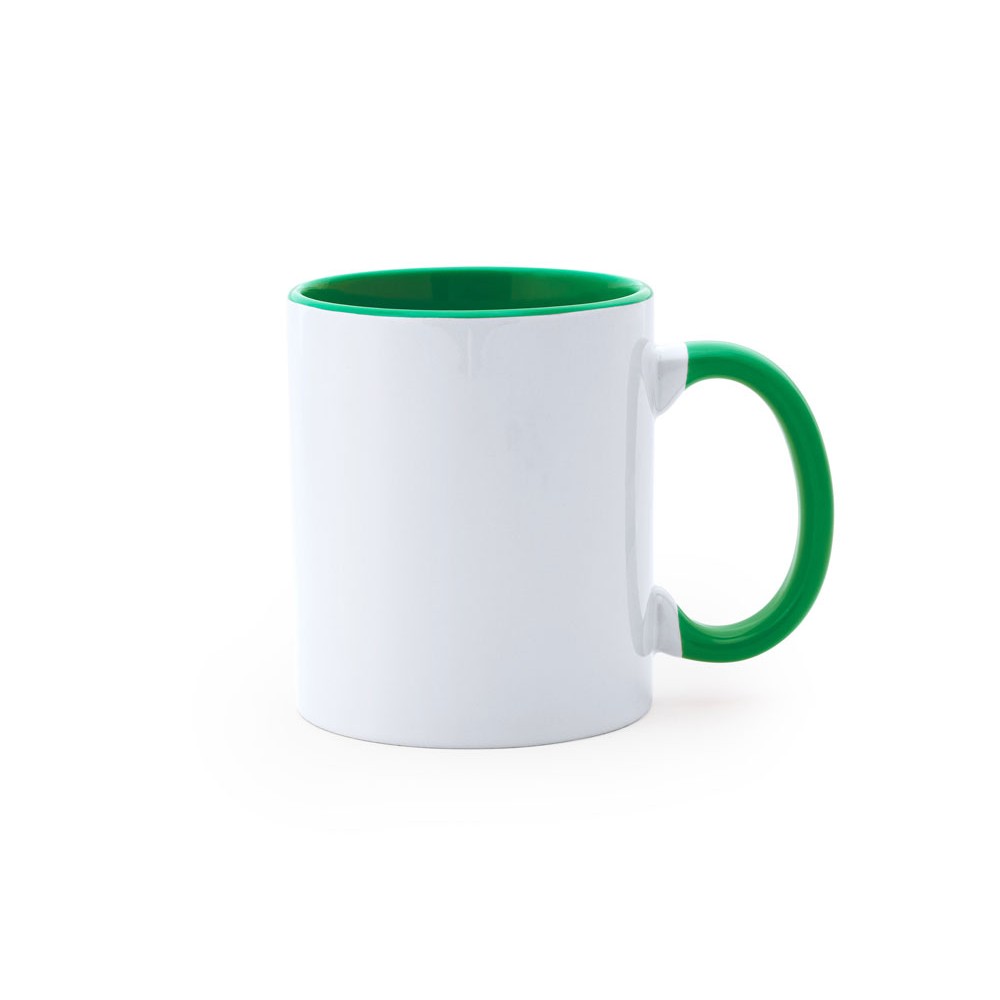 Керамическая кружка объемом 350 мл, для сублимации. Внутренняя отделка в тон ручке. Поставляется в белой упаковке.
