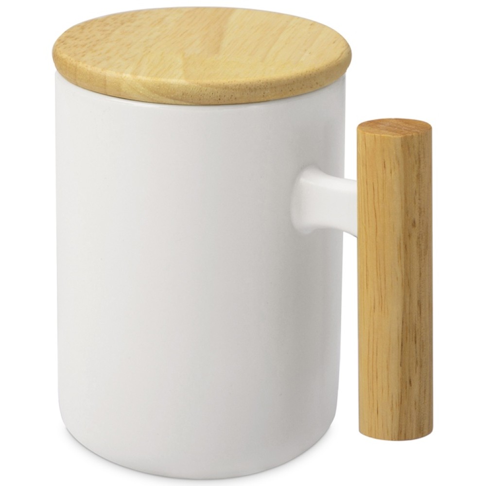 Кружка с ручкой и крышкой из каучукового дерева Jeny, белый